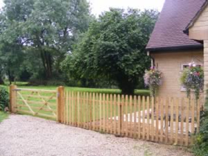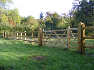 Post and rail fence with beech hedge Traditional Cotwold dry-stone walling