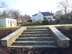 Steps constructed with traditional Cotswold, dry stone walling Fencing